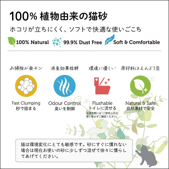 秒で固まる・臭いを制御・トイレに流せる猫砂‼