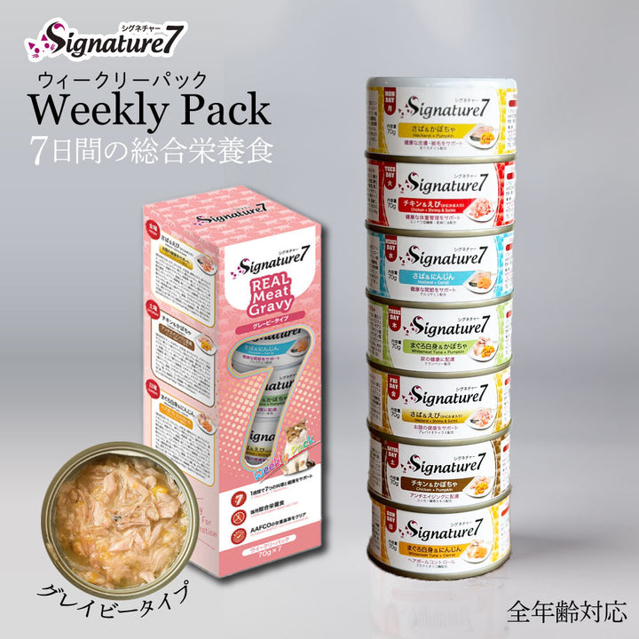 1週間毎日違う味が楽して、いろんなタイプのフードがある7種類入りのウイークリーパック!