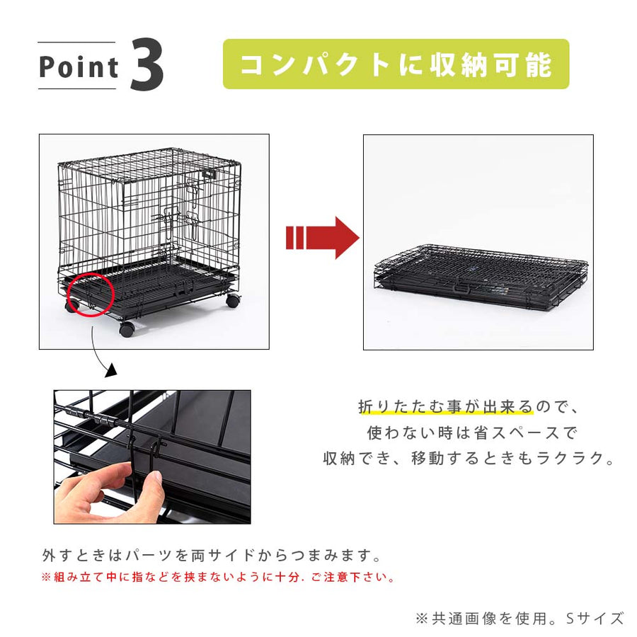 ・お部屋での使用から、コンパクトに折りたたんでドライブ・旅行にも便利なペット用ゲージです。
