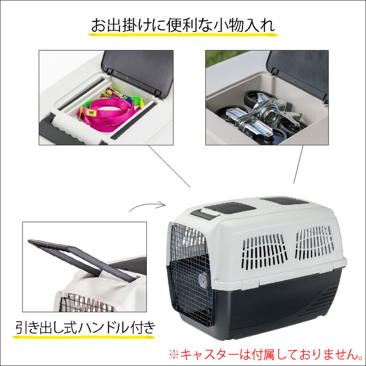 イタリアferplast社製のキャリー。小物入れと引き出し式ハンドル付き。