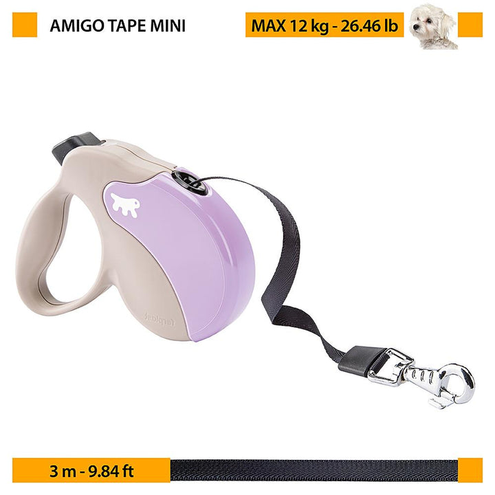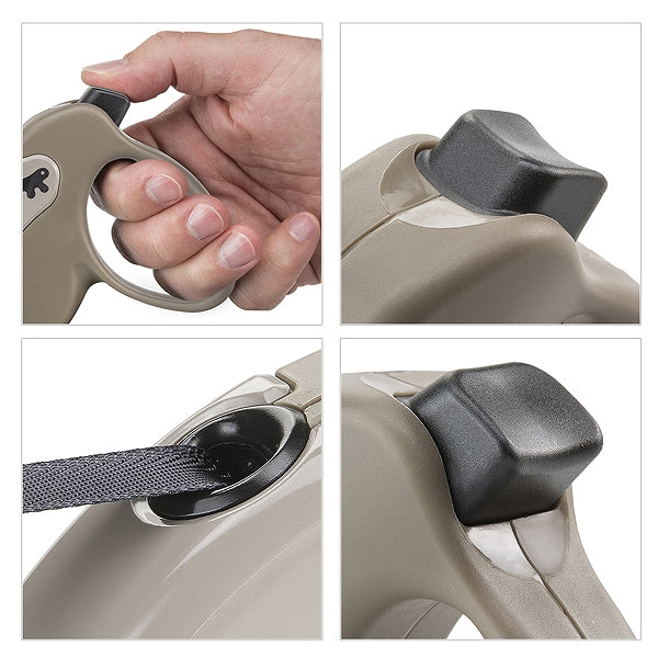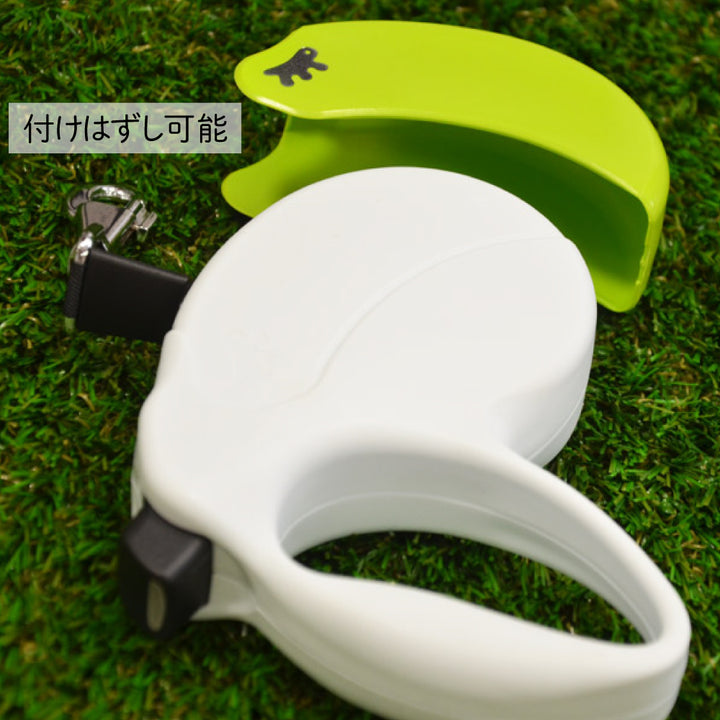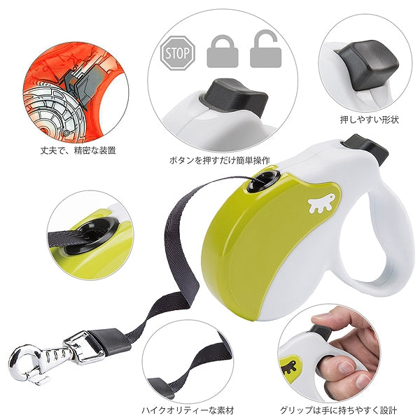 ワンちゃんの動きに合わせて自在に調節できる伸縮リード。