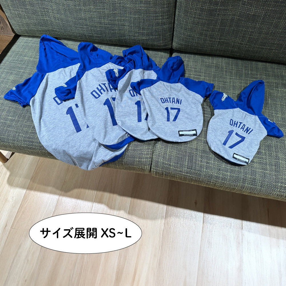 MLBの公式、大谷翔平選手モデルのペットグッズが登場。メジャーリーグファン必見!! ブレイズ・ドジャース、大谷翔平選手モデルの可愛いワンちゃんのパーカー(首元にマジックテープ)大好きなチームのユニフォームを大好きな