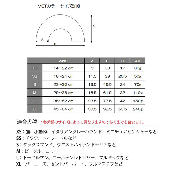 ※ご購入の前に必ず別表の「VETカラー サイズ詳細」をご覧いただき、商品サイズ・重量をご確認下さい。