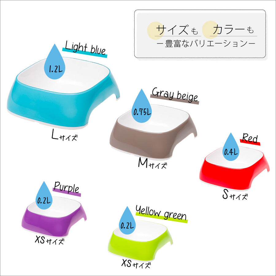 ペットが食べやすくデザインされており、洗いやすく丈夫で軽量。