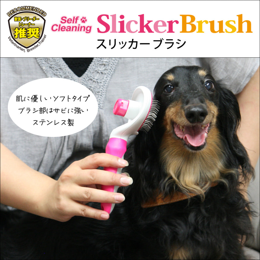 セルフクリーニング スリッカーブラシ S/L お手入れ ブラシ