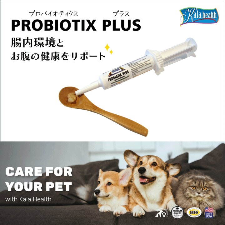 高密度の直接給与菌(DFM)とプレバイオティクスの組み合わせ。150億コロニー形成単位(CFU)の自然に存在する微生物のことです。ペットには4種類のそれぞれ違う善玉菌がいることが発見されています。それらがプロバイオティクスプラスを使うことで急速にコロニー形成(集団増殖)を行います。