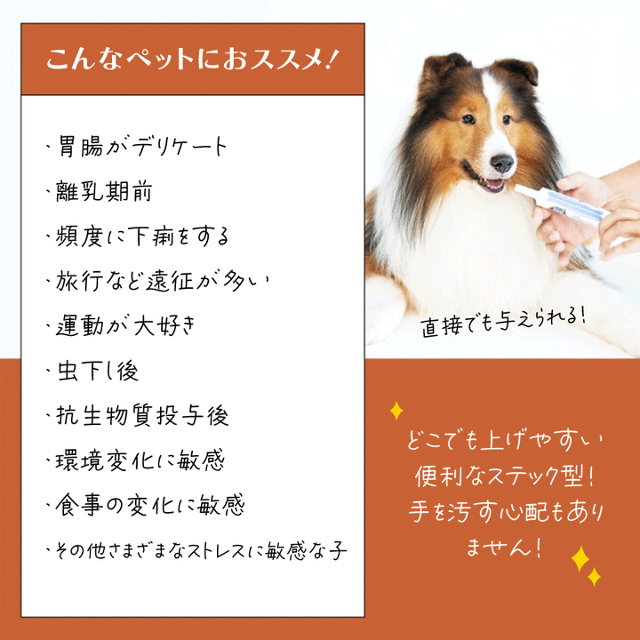 胃腸がデリケート・離乳期前・頻繁に下痢をする・旅行など遠征が