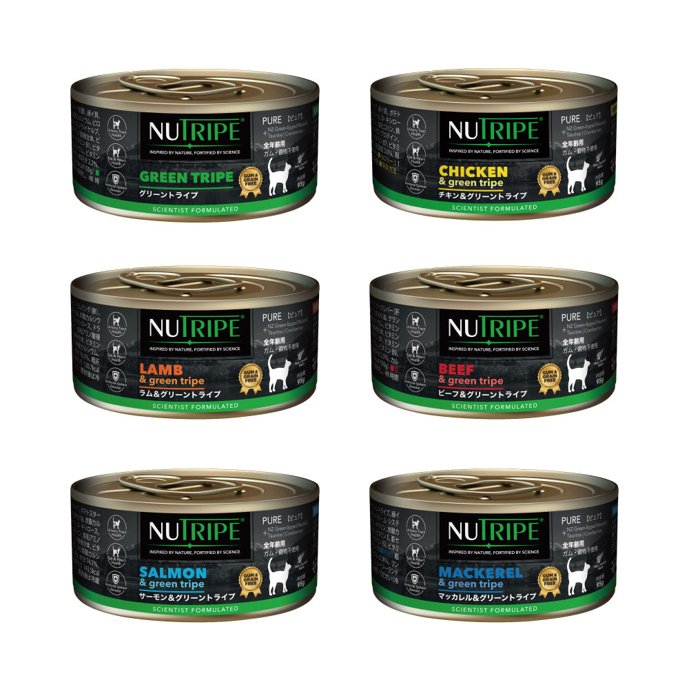 トライプに加え・クランベリー・緑イ貝・ドライケルプを配合したウェットタイプの総合栄養食。
