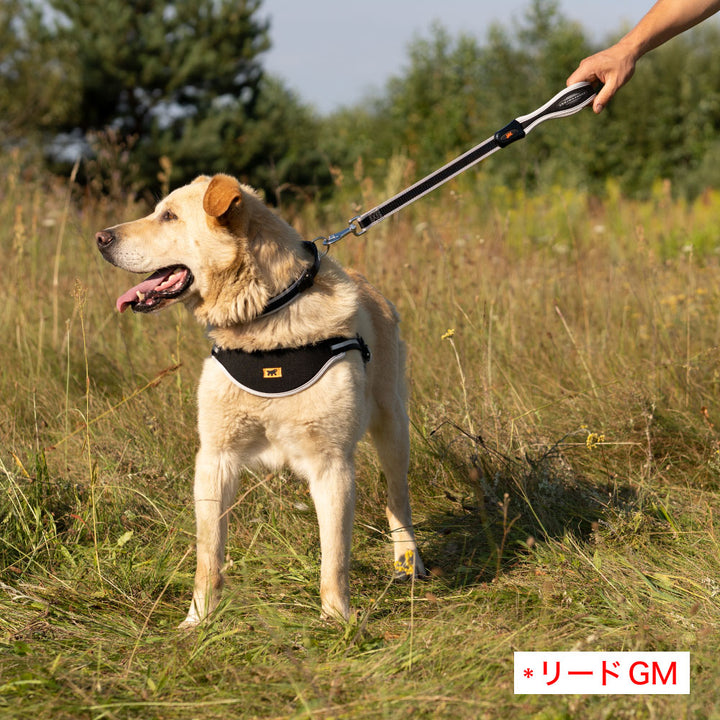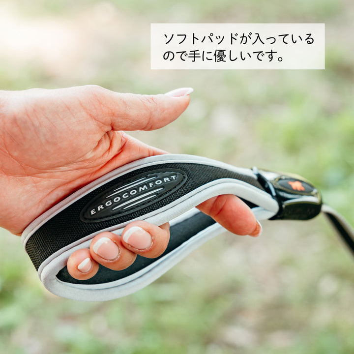 リードのグリップ部分が柔らかいパットになっているので、わんちゃんが強く引っ張っても大丈夫。