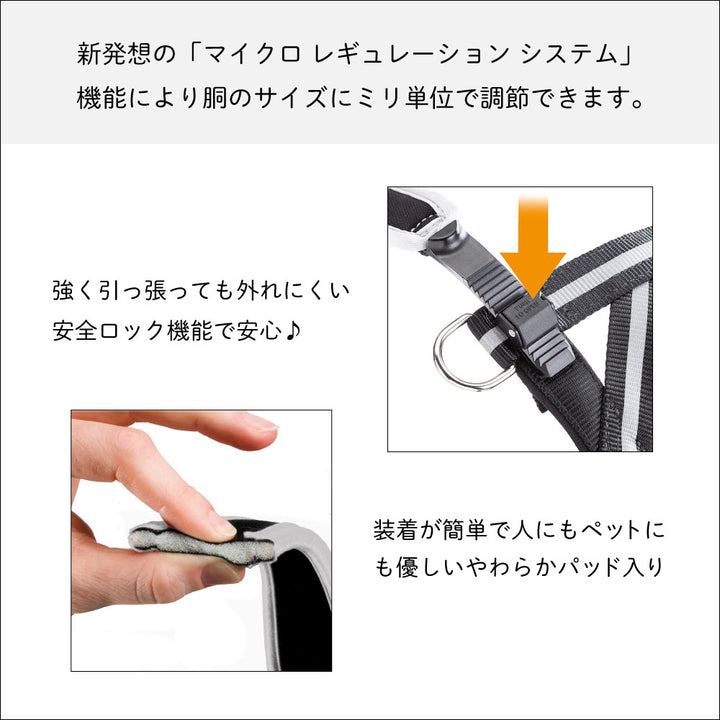 新発想の「マイクロ レギュレーション システム」機能により胴のサイズにミリ単位で調節できます。