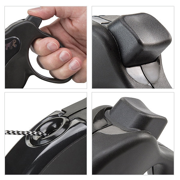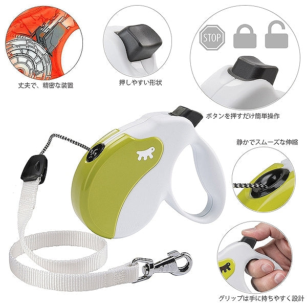 ワンちゃんの動きに合わせて自在に調節できる伸縮リード。