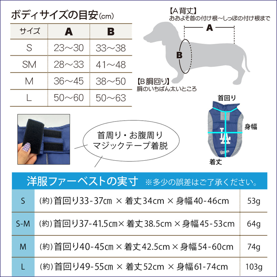 ロサンゼルス ドジャース 、大谷翔平選手モデルの可愛いワンちゃんのパッファー ベスト。