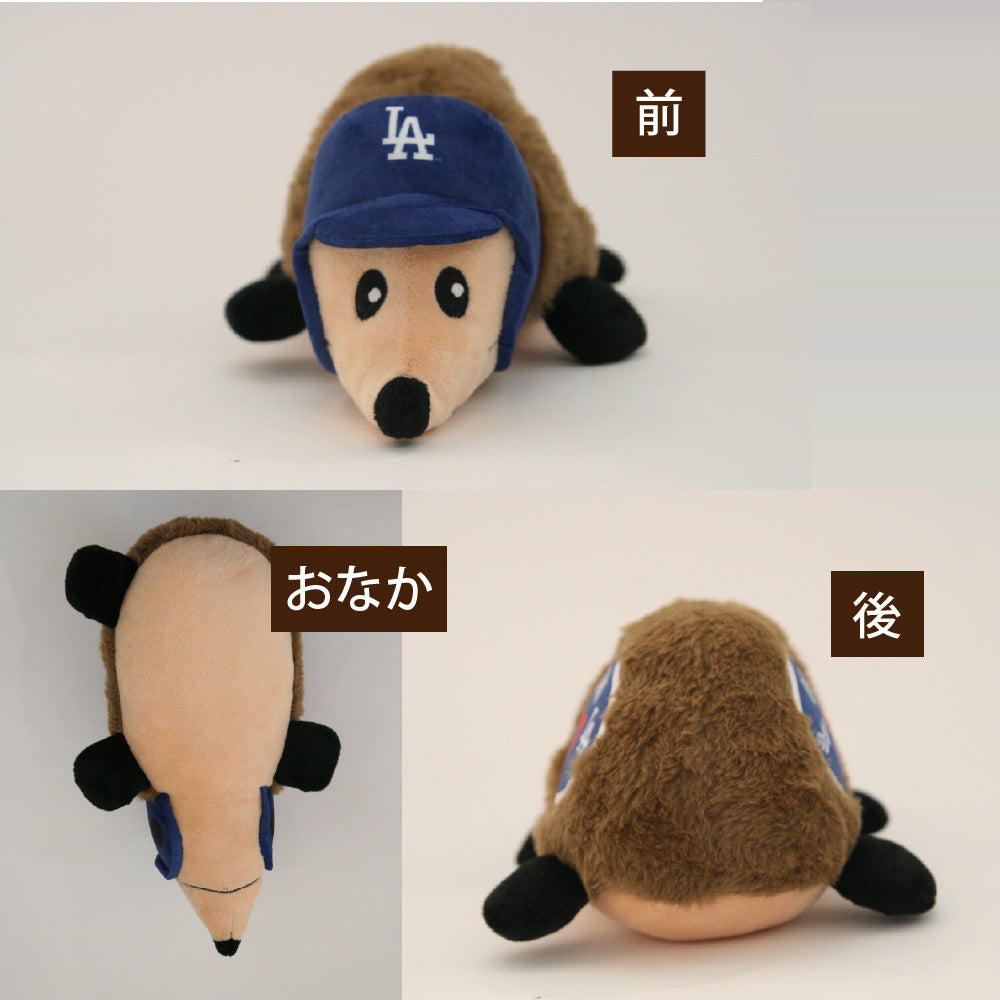 ドジャースのヘルメットをかぶったハリネズミ、スキューカー入りで押すと音が鳴ります。