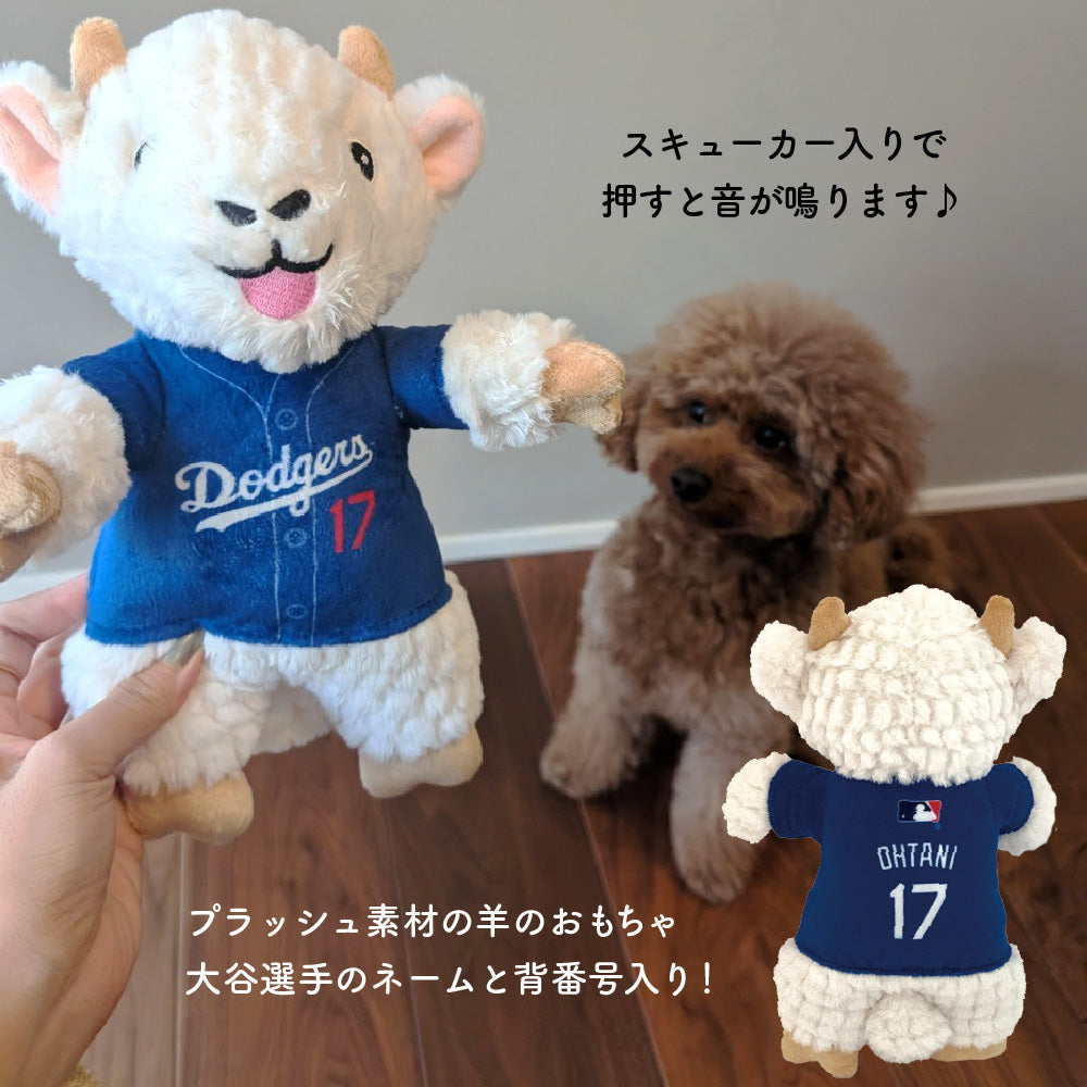 プラッシュ素材のゴート(羊)のおもちゃ、ドジャースのユニフォームを着て(刺繍)もちろん大谷選手のネームと背番号入り、