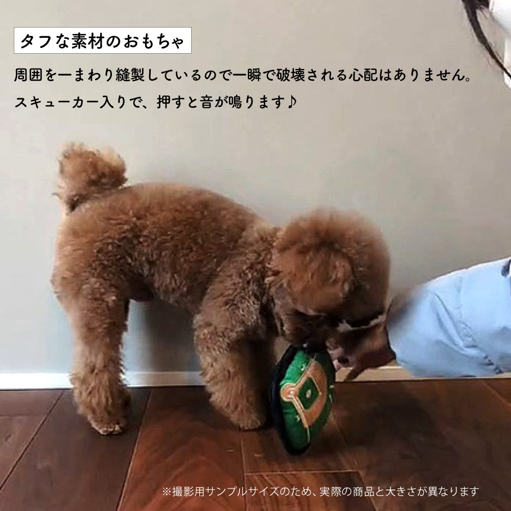 タフな素材のおもちゃ、周囲を一まわり縫製しているので一瞬で破壊される心配はありません。