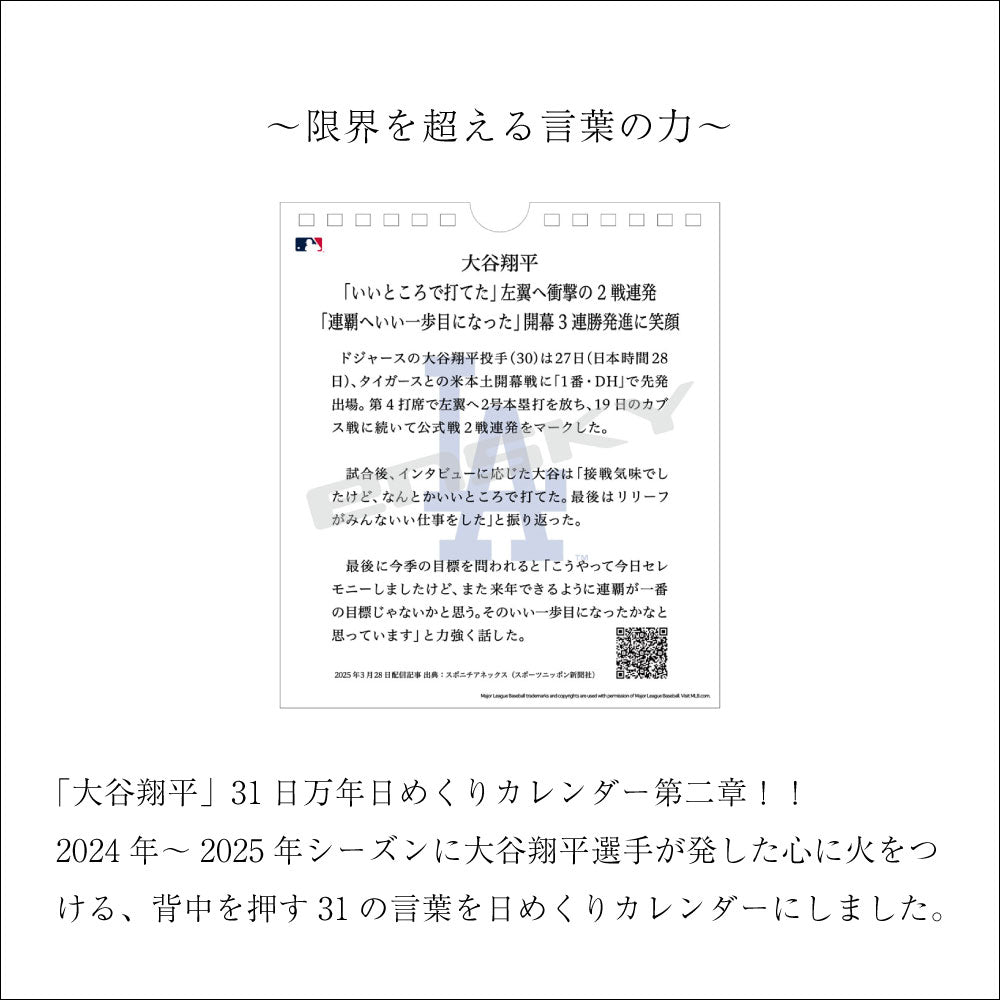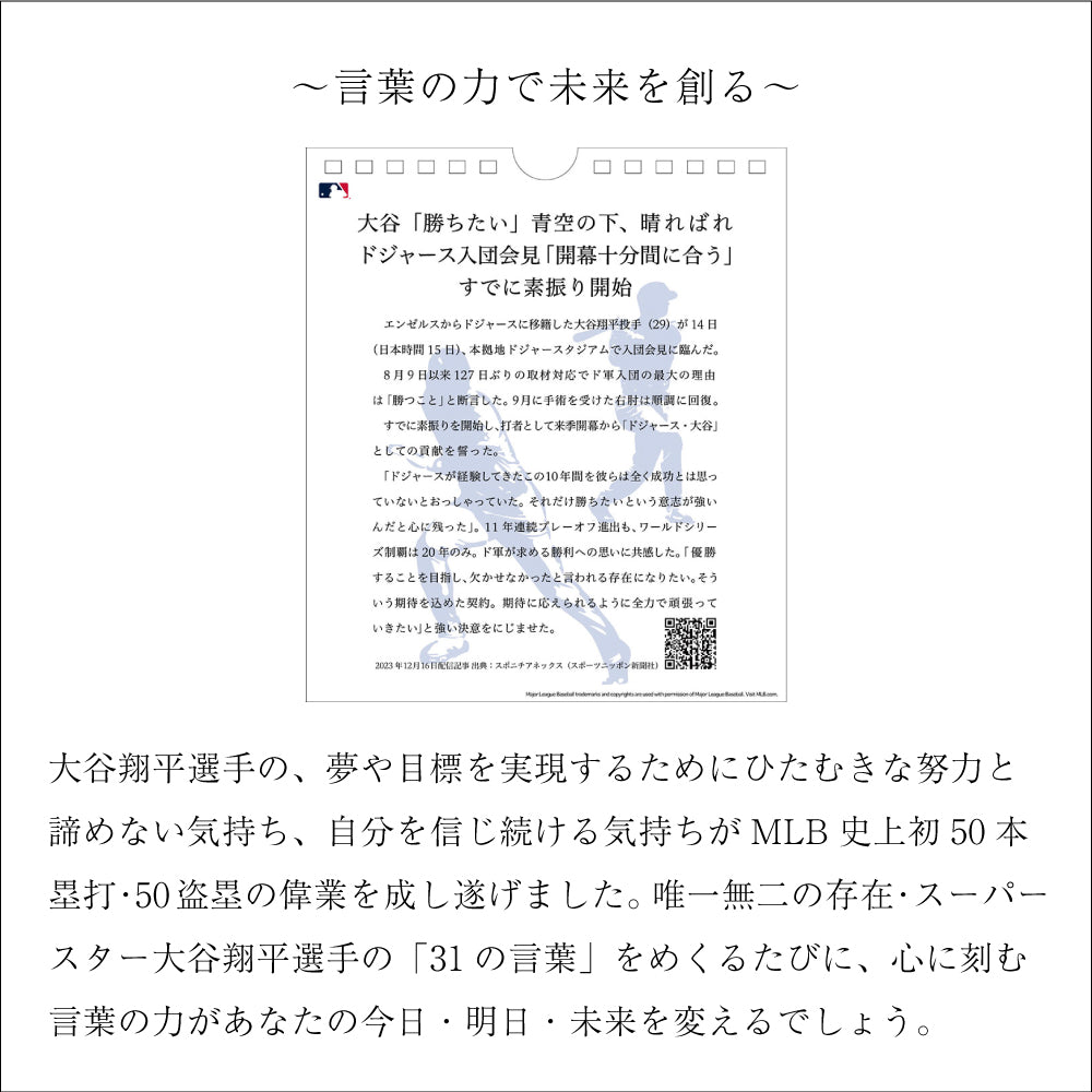 2024年~2025年シーズンに大谷翔平選手が発した心に火をつける、背中を押す31の言葉を日めくりカレンダーにしました。