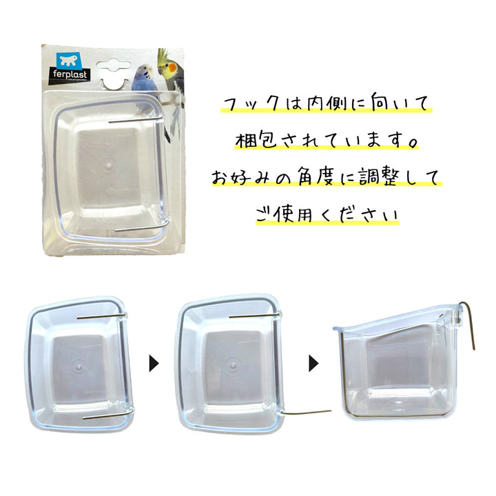 イタリアferplast社製の鳥かごに掛けて使える餌入れ。